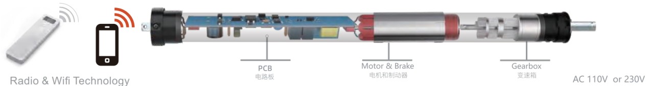 AC Tubular Motors has strong compatibility and low cost, simple structure, high durability, basic intelligent control, easy to integrate, used for automation Window Roller Blinds/ Door Roller Blinds/ Roller Shutter Blinds.