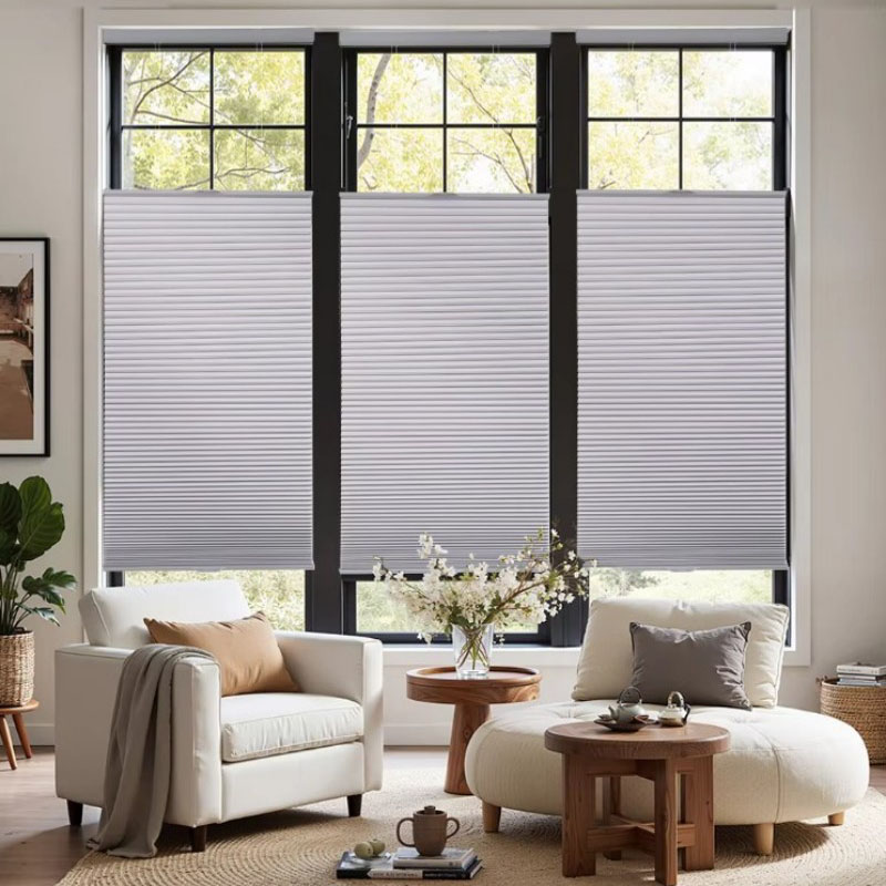 Dimmable honeycomb blinds (including day/night and top down bottom up types) are ideal for home, office, and commercial spaces due to their flexible light control capabilities. During the day, adjusting to the light-transmitting mode effectively filters out strong sunlight and ultraviolet rays, retaining soft natural light. At night, when resting or needing privacy, adjusting to the blackout mode completely blocks out external light and light, ensuring complete privacy.