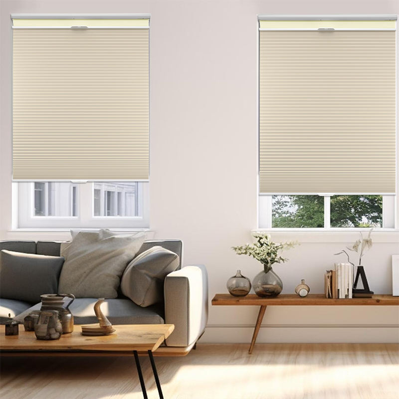 The single-layer honeycomb blind fabric is treated with anti-fouling and anti-static agents, making it resistant to dust and deformation. It can be easily cleaned with a dry cloth, eliminating the need for disassembly and washing, saving time and effort. It will not fade or become brittle over long-term use. The single-layer fabric, combined with a thin aluminum alloy track, makes it lightweight and runs smoothly, preventing jamming or skewing. Daily operation is more convenient, and installation costs are low, requiring no complicated parts, making it suitable for uniform installation throughout the house.With its cordless design, stylish and modern appearance, smooth lifting and lowering, and adjustable height, this product is suitable for windows, homes, living rooms, bedrooms, bathrooms, kitchens, dining rooms, schools, offices, and other places.