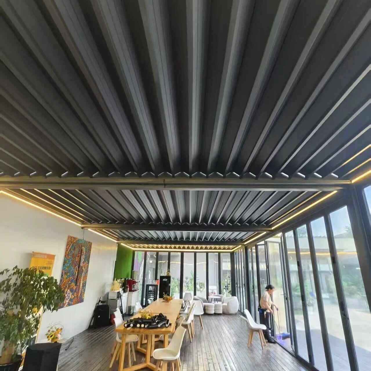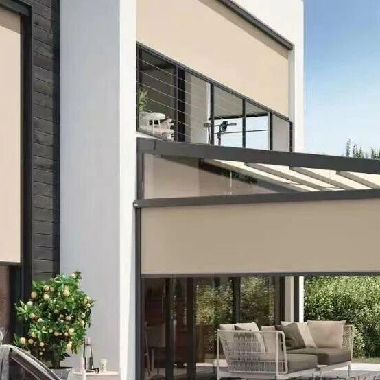 Exterior sunroom roller blinds should have good wind resistance and support both manual and electric control. When using electric control, provisions for electrical wiring and structural guide rails should be considered in advance. Alternatively, a solar panel and battery system can be used to power the roller blind motor. They are widely used in studios, garden restaurants, outdoor lounges, and other similar locations.
