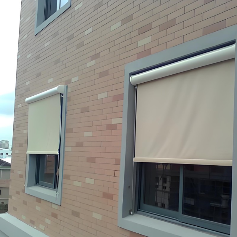 Futai's China Trackless Exterior Roller Shades, as the name suggests, are a type of roller blind system installed on the exterior of buildings but do not use vertical rigid guide rails on either side of the slats. They primarily rely on the structural strength of the slats themselves, special side designs, and a precise tension system to withstand wind forces, and they achieve waterproof and dust proof effects through optimized top and bottom seals.